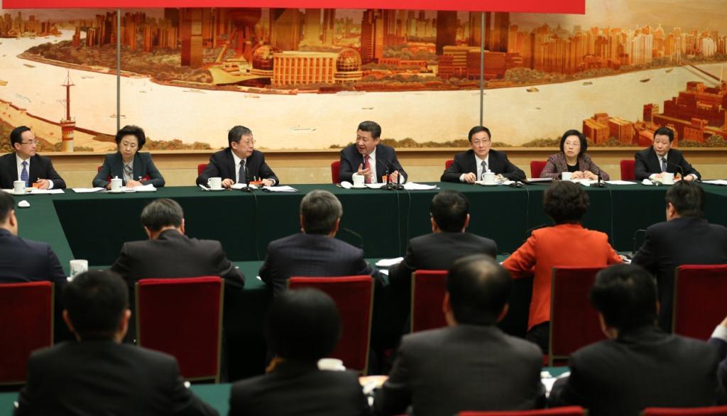 3月5日,中共中央总书记、国家主席、中央军委主席习近平参加十二届全国人大三次会议上海代表团的审议。(新华社记者 黄敬文摄)