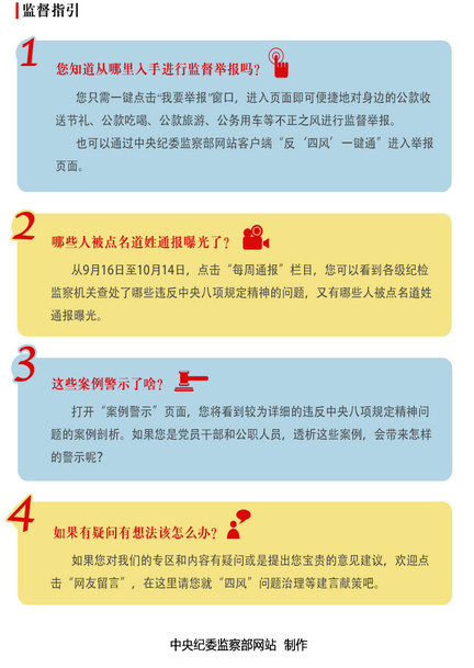 本网今日推出《中秋国庆纠正“四风”监督举报曝光专区》 欢迎举报公款收送节礼吃喝旅游等违规违纪问题