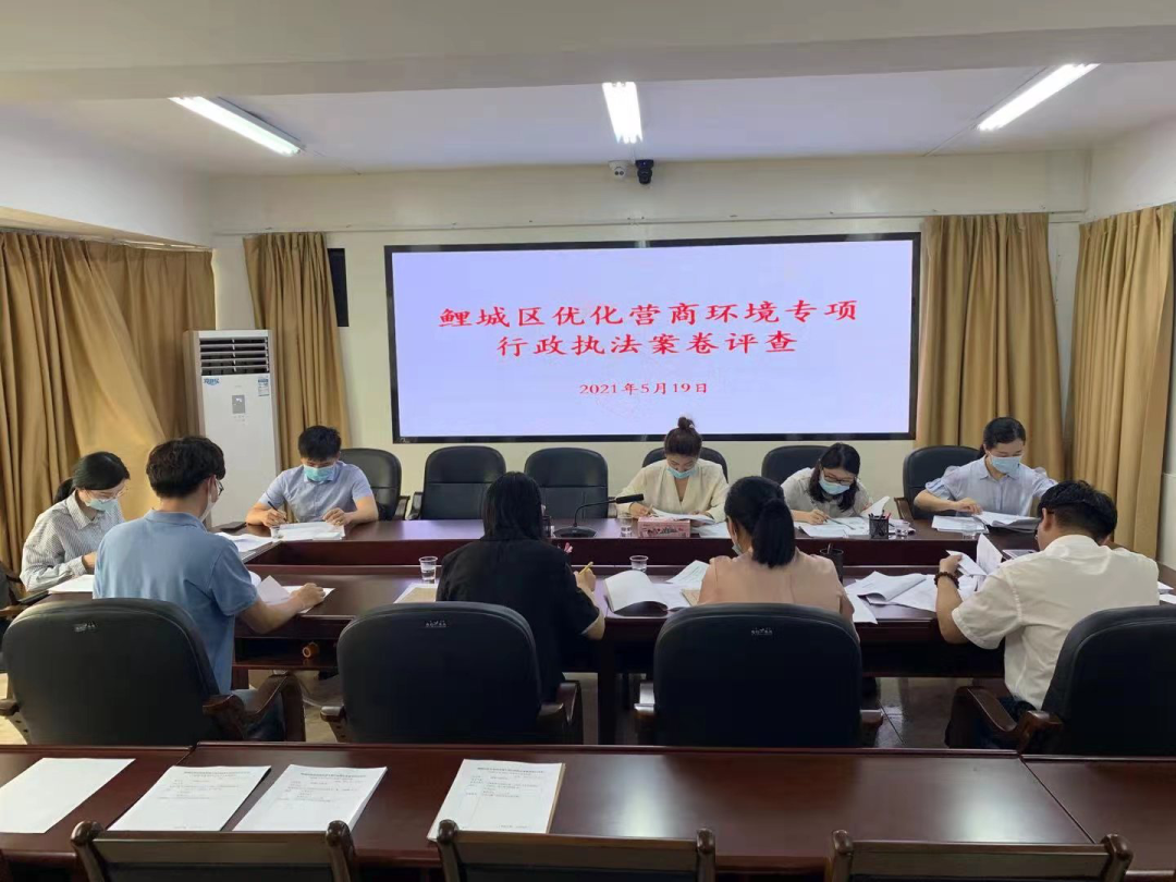 图为督查组开展优化营商环境专项行政执法案卷评查工作