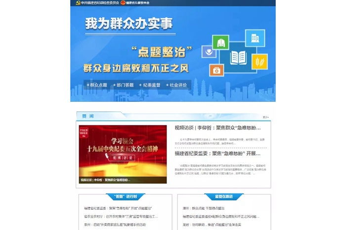 福建各地纪检监察机关各负其责,积极自主“领题”。福州市纪委监委梳理出教育、医疗、生态环保等19项突出问题,通过“项目化推进、流程化运作、清单化管理”等方式,分类处理公开收集群众留言145条,督促相关职能部门履行主体责任,回应群众关切。
