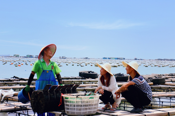 福建省罗源县纪委监委聚焦农村群众关注的农村集体“三资”问题开展“点题整治”。图为8月10日,罗源县纪检监察干部在碧里乡牛澳村海上渔排向群众了解村集体“三资”管理有关情况。 林京怡 摄