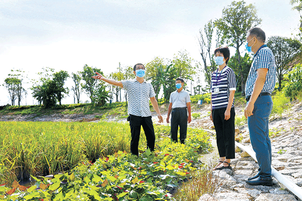 图为福建省诏安县纪委监委“室组”联动工作组,深入南湖现场了解违规占用耕地问题整改情况。吴楠 摄