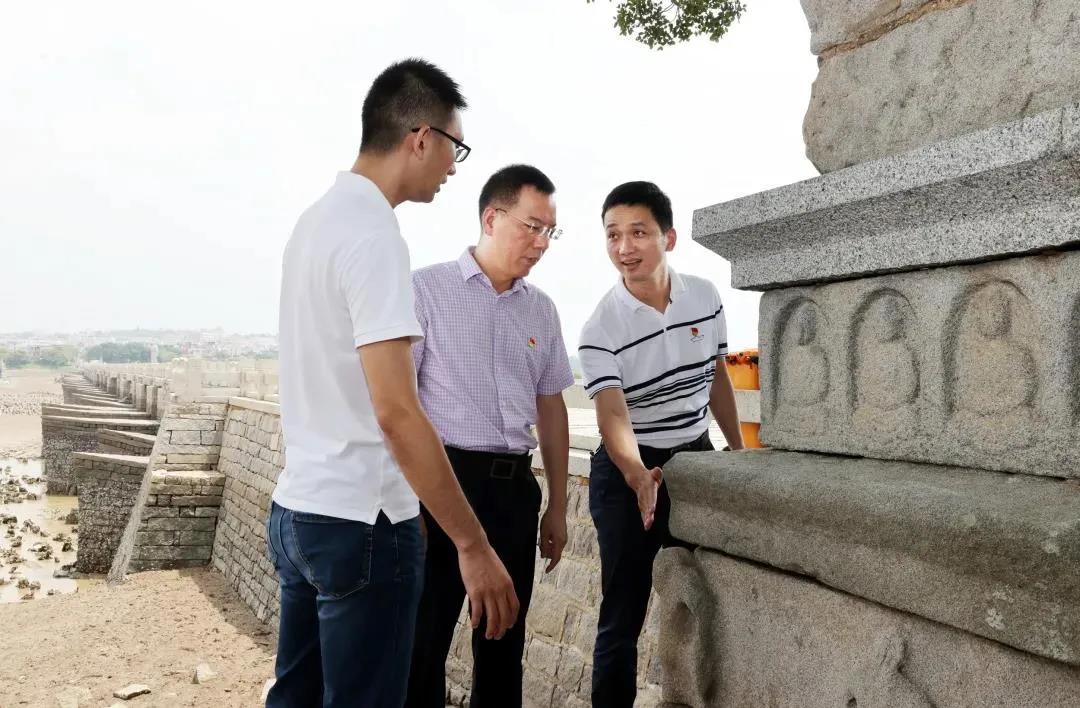 泉州市纪委监委驻市文旅局纪检监察组会同市文旅局、市文化市场综合执法支队等职能部门开展督查,了解洛阳桥遗产点的文保工作落实情况(张九强 摄)