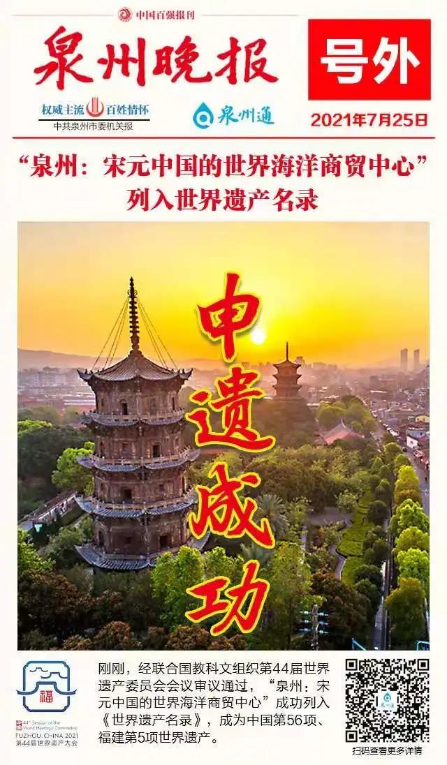 《泉州晚报》报道“泉州:宋元中国的世界海洋商贸中心”申遗成功