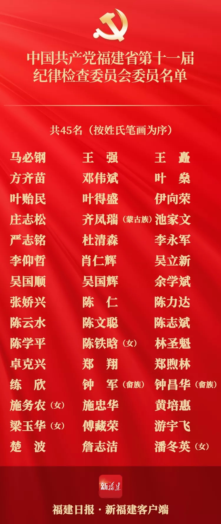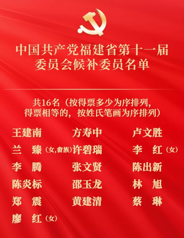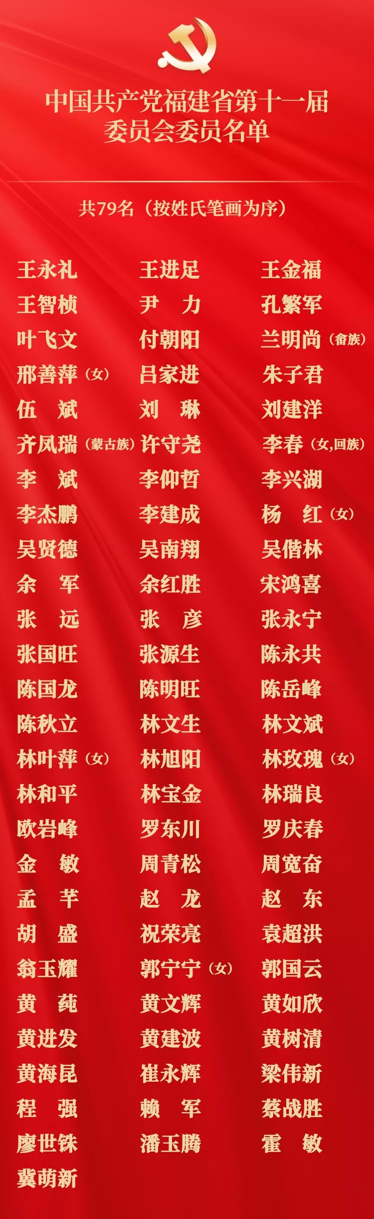 中共福建省第十一届委员会委员、候补委员名单 中共福建省第十一届纪律检查委员会委员名单