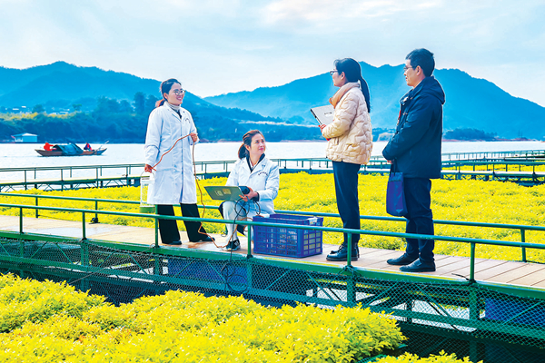 浙江省淳安县纪委监委加强生态环保领域政治监督,紧盯相关政策措施落实情况,联合职能部门建立千岛湖生态环保综合监督机制,用铁纪守护绿水青山。图为近日,该县纪委监委会同环保部门到千岛湖生态浮岛项目了解相关情况。毛勇锋 摄