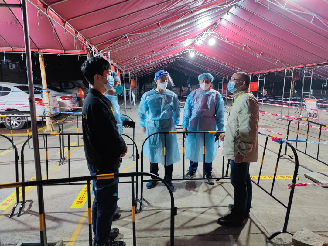 鲤城区纪委监委疫情防控常规监督组凌晨到达浮桥街道核酸采集点了解核酸采集前准备工作落实情况(杜金良 摄)
