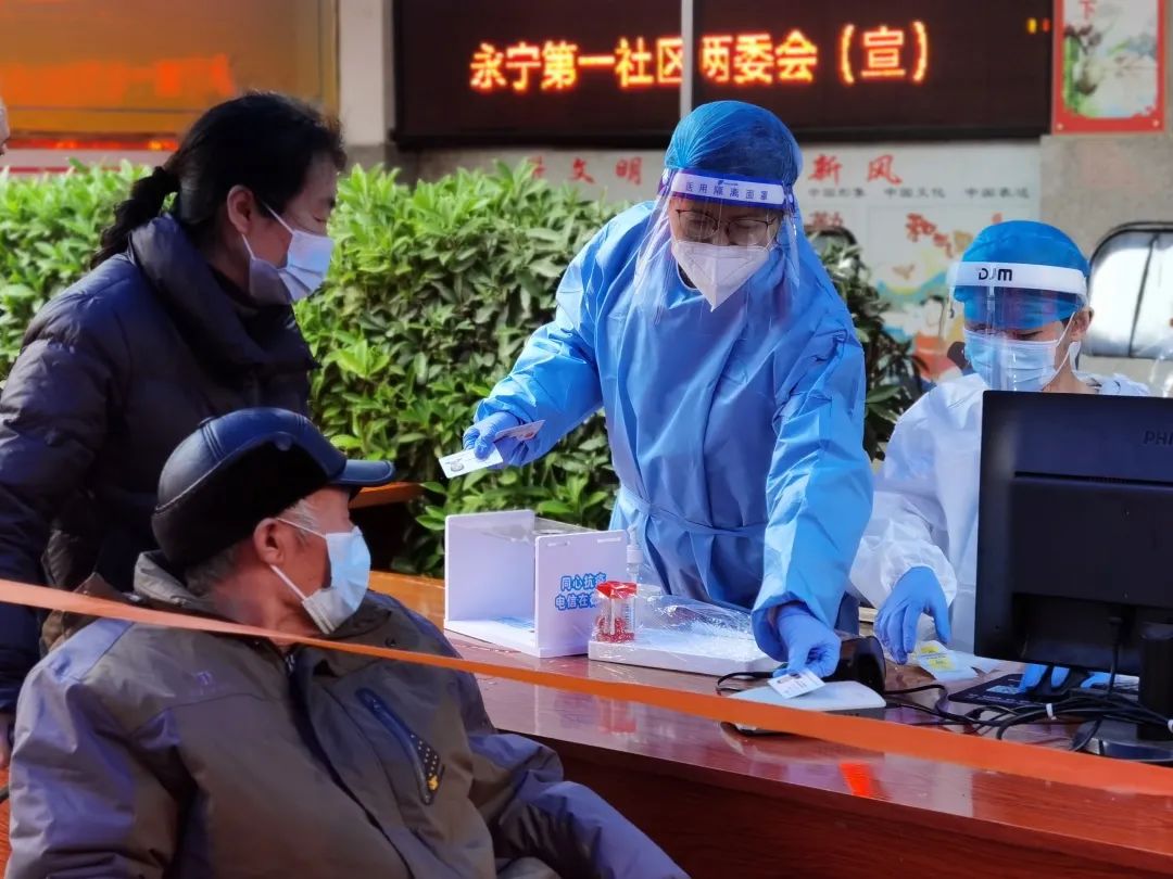 22日,阵雨,气温骤降,风雨给今天大规模人群核酸检测带来一定考验。为应对降温降雨天气,昨天深夜,我和社区干部再次对核酸检测点位和路线进行优化,提前搭建起了“超大号”雨棚。4时40分,我早早出发来到永宁镇卫生院,督查核酸采集人员到位和物资保障情况,所有点位领取完物资后,5时15分,我马不停蹄到自己负责的第一社区开始核酸检测前的准备工作。做好准备后,我到17个核酸检测点开展监督检查,对测温验码、信息录入、秩序维护和样本转运等重要环节工作情况进行监督。在战“疫”场上的我们既是监督员也是战斗员,在这场“倒春寒”里,所有“战士”汇聚成一道道双向奔赴的暖流,同心战“疫”待春回,愿疫情早日散去,还昔日繁华街头。