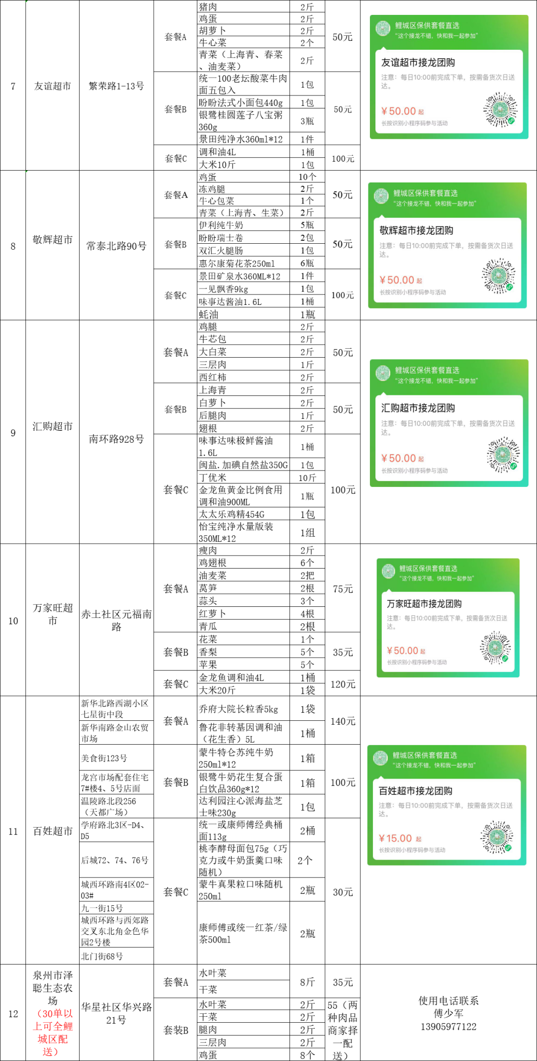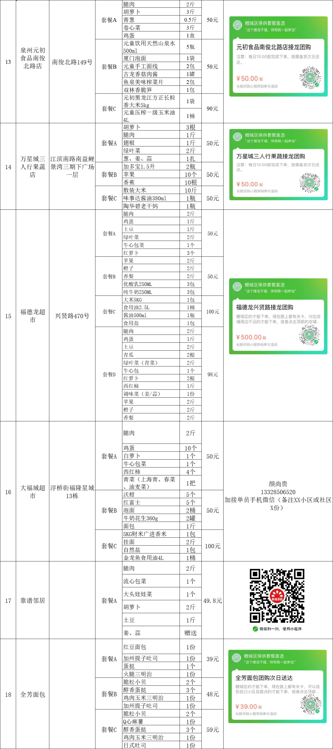 第一、鲤城区商务局增加了保供企业数量,丰富了“保供套餐”品类,并适时更新了“保供套餐”;