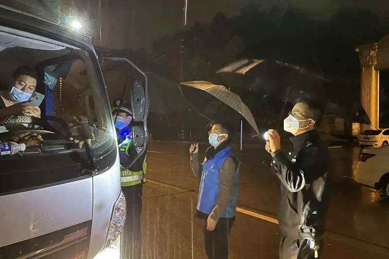 永春县桃城镇纪委监察组干部到南环路疫情防控交通查验点了解查验通行证、健康码、核酸检测报告等疫情防控措施落实情况。(李明杰 摄)