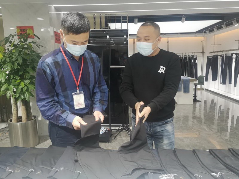 石狮市委常委、市纪委书记、市监委主任陈守林到某服装发展有限公司了解企业复工复产情况(吴瑞文 摄)