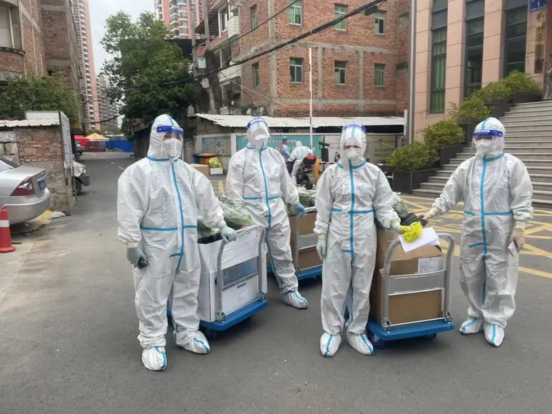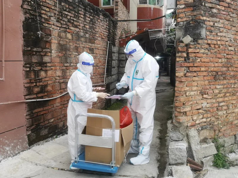 几天下来,我们4人每天辗转于12条小巷,打包、分发抗原自测试剂2000多份,接打电话100多个,步行10多公里,防护服下的衣服经常湿透。尽管疲惫,我们都坚信,守望相助定能共克时艰。