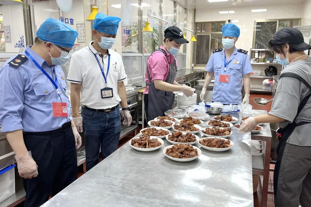 惠安县纪委监委驻县市场监督管理局纪检监察组干部到惠安高级中学考点,了解考生就餐点食品安全保障工作落实情况。(庄丽萍 摄)
