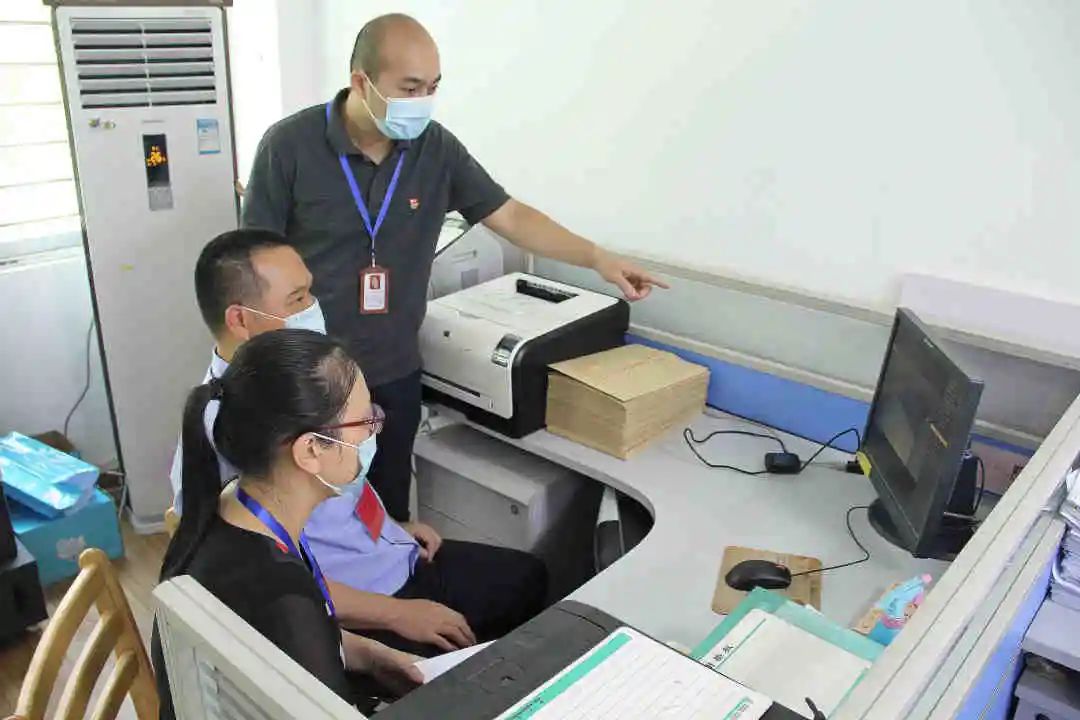 洛江区纪委监委驻区教育局纪检监察组干部在招考办了解试卷保密运输监控工作落实情况(陈静雯 摄)