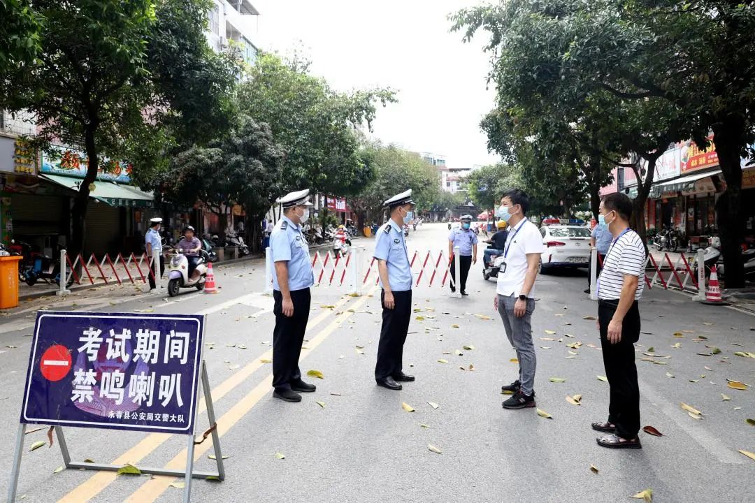 永春县纪委监委驻县公安局纪检监察组干部在某中考考点周边监督检查交通管制情况(陈跃虹 摄)
