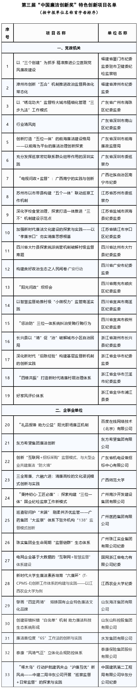 第三届“中国廉洁创新奖”项目征集期间,共收到174个项目申报,初次评选会于7月10日在北京清华大学举行,会议采取线上和线下结合的方式进行。评委会的51名专家按照创新程度、重要程度、效益程度、持续程度、推广程度等标准,对项目进行了初次评选,最终评选出21个入围项目和33个特色创新项目。