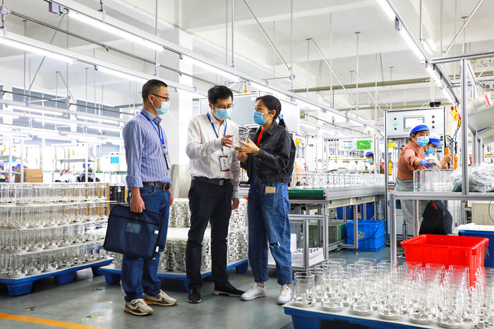 福建省各级纪检监察机关聚焦“三新一高”等重点任务加强监督检查,推动党中央决策部署落实落地。图为近日,该省福鼎市纪检监察干部在辖区企业开展监督检查。陈是 摄