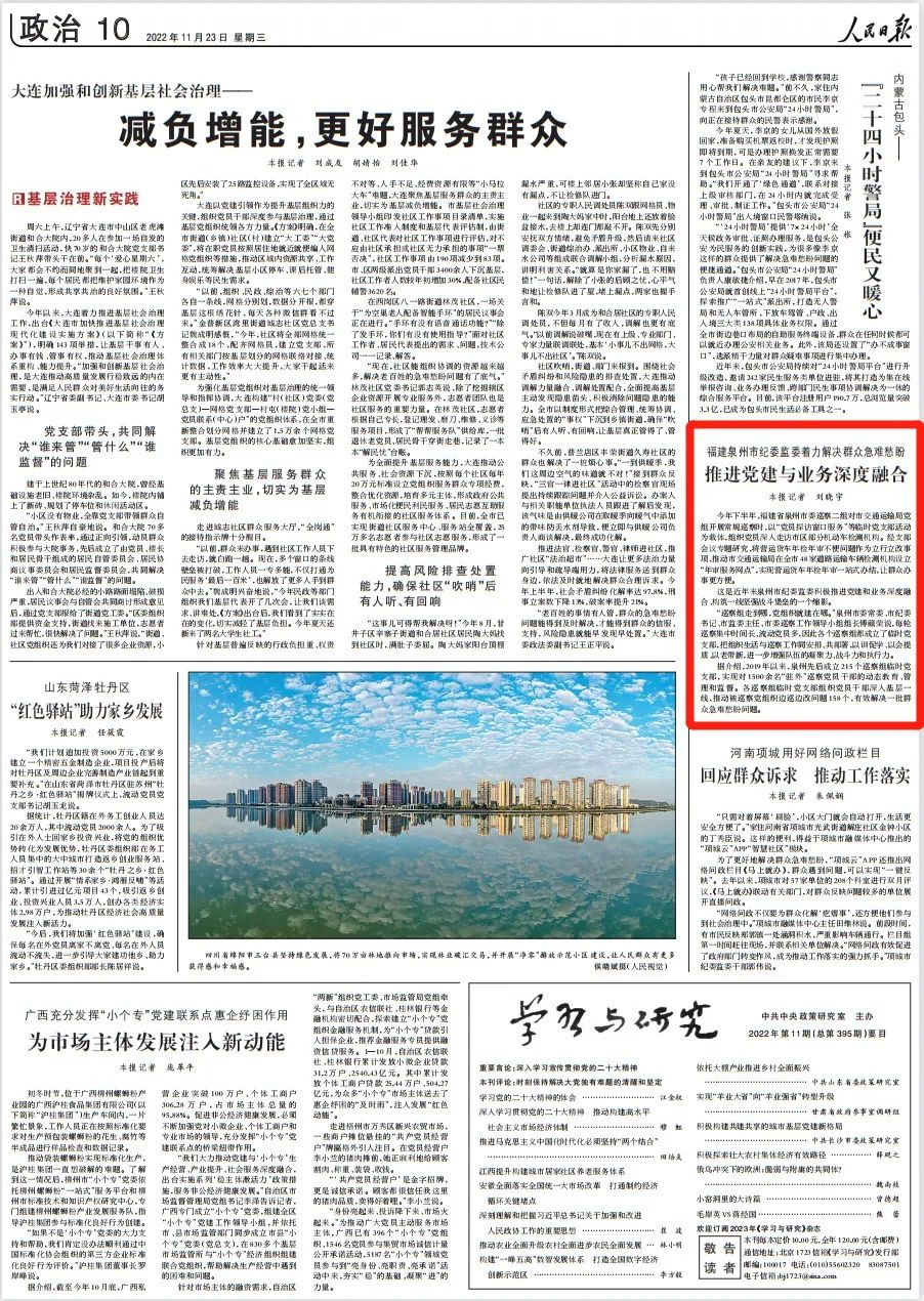 11月23日《人民日报》政治版刊发推介泉州市纪委监委着力解决群众急难愁盼,推进党建与业务深度融合的经验做法。