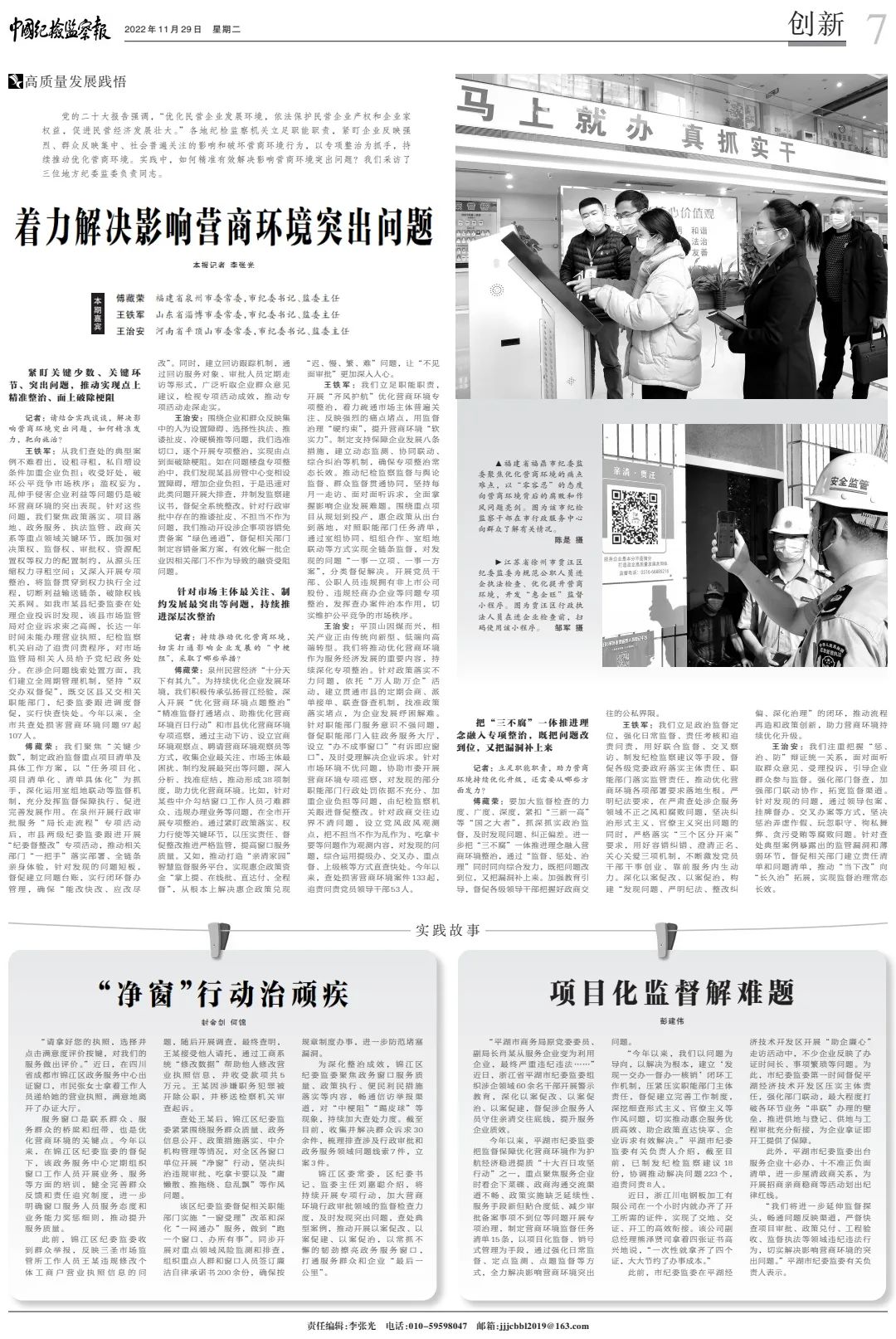 11月29日,《中国纪检监察报》刊发文章《着力解决影响营商环境突出问题》
