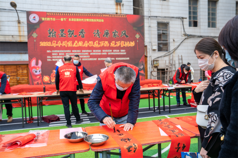 春节前夕,为营造文明祥和清廉的节日氛围,弘扬优良家风,持续深化“三级联创”活动,泉州市纪委监委机关党委、丰泽区纪委监委和法石社区党委联合举办“翰墨飘香·清廉家风”送春联活动,邀请纪检监察干部和丰泽区书法家共同写春联、送春联,将廉洁清风和新春祝福送到广大群众中。