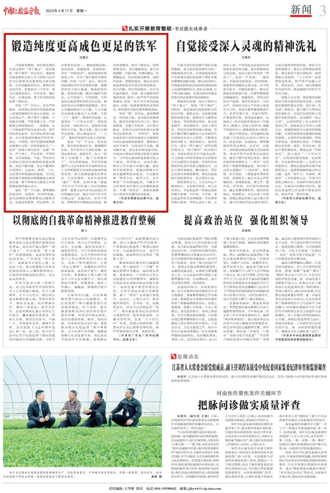 今天,《中国纪检监察报》“扎实开展教育整顿•书记组长谈体会”栏目,刊发福建省委常委、省纪委书记、省监委主任迟耀云署名文章《锻造纯度更高成色更足的铁军》,现予以全文转载。