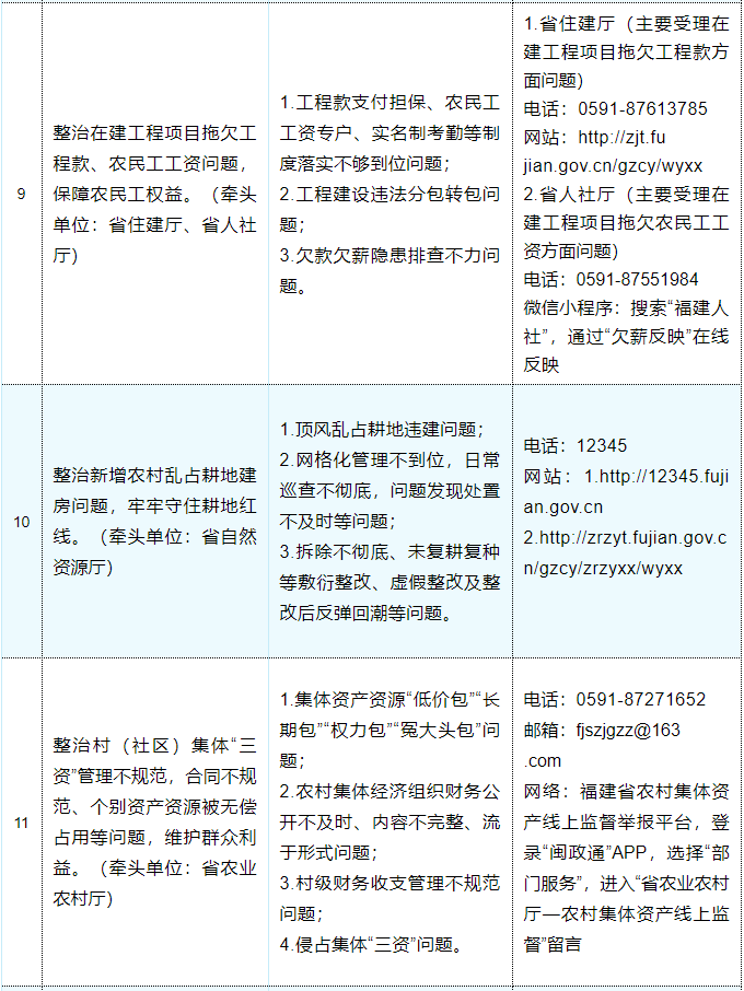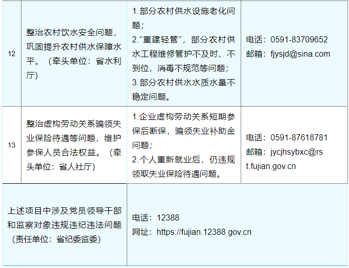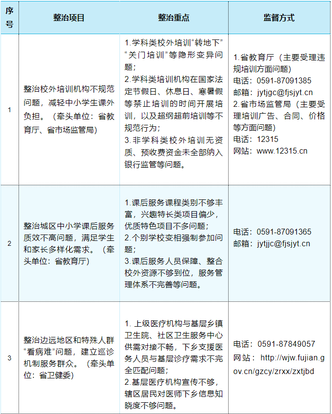 为方便群众参与监督和反映问题,现公布13项“点题整治”项目、整治重点及监督方式: