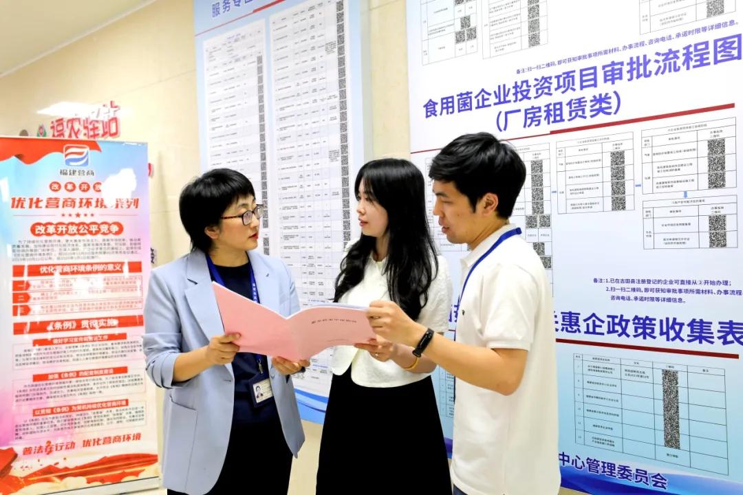 古田县纪检监察干部到县政务办“菌菇之链”窗口了解优化办证审批流程工作开展情况。