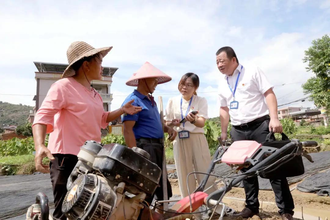 南安市纪检监察干部在霞美镇霞美村向群众了解涉农补贴发放有关情况(黄文彪 摄)