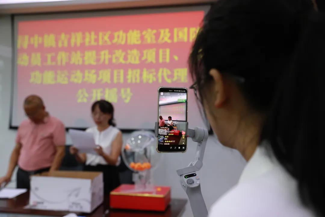 德化县浔中镇纪检监察干部指导村(社区)进行村级工程项目招标代理公开摇号群直播。(林俊贤 摄)