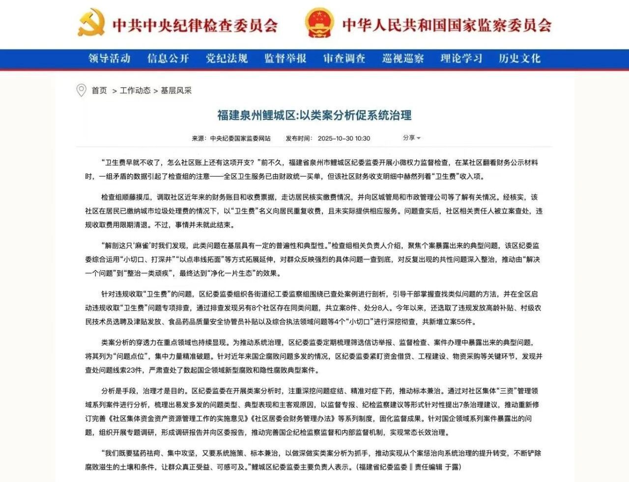 ▲ 中央纪委国家监委网站截图(2025年10月30日 )